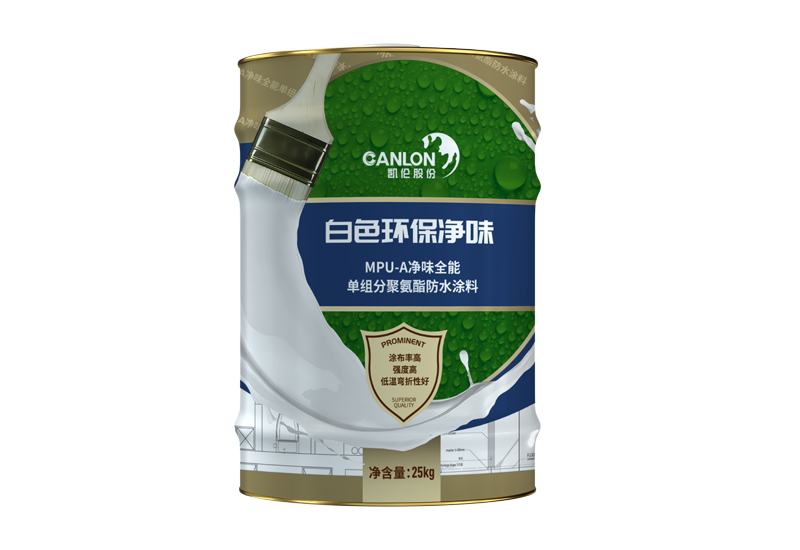 MPU-A净味万能单组分聚氨酯防水涂料是一种无溶剂、极低挥发性有机化合物、环保型的聚氨酯防水涂料。。。。。。。。该产品主要由异氰酸酯和聚醚多元醇组成,,,,,配以特殊助剂、填料和颜料,,,,,在先进的反应釜式工艺装备中经由聚合反应制成。。。。。。。。使用时将其涂覆在防水下层上,,,,,与空气中的湿气爆发反应,,,,,在下层外貌形成一连、无缝的橡胶特征涂膜防水层。。。。。。。。